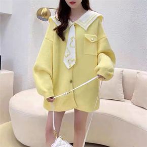 开衫针织外套女2022秋冬新款软糯宽松慵懒风加厚毛...