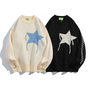 2022秋冬新款五角星品质加厚保暖韩版宽松针织毛衣...