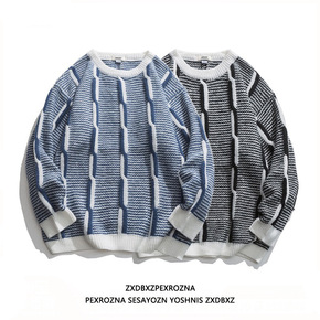 条纹毛衣男女秋冬季潮牌复古设计感小众宽松慵懒风圆领...