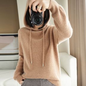 秋冬新款连帽针织衫女卫衣宽松带帽打底衫加厚百搭毛衣...