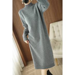 秋冬洋气网红气质女神范搭配大衣的针织衫内搭打底连衣...