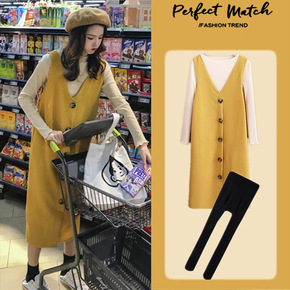孕妇连衣裙秋装套装时尚款打底衫春秋内搭中长款韩版上...