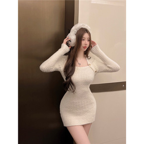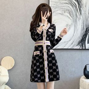 法式气质名媛小香风针织裙高腰显瘦内搭复古修身202...