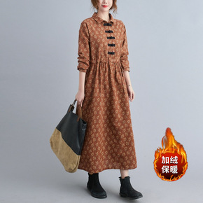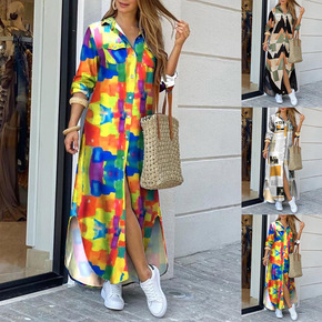 孕妇连衣裙中长款秋冬新款减龄甜美印花衬衣裙秋装衬衫...