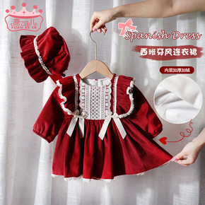 女童秋冬加绒周岁连衣裙婴儿女宝宝西班牙礼服裙子秋款...