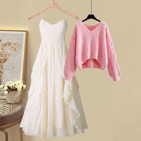 吊带内搭裙秋冬季套装女2021新款大码毛衣女宽松显...