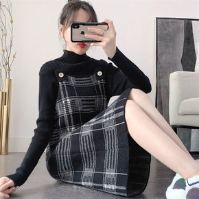 2021新年装减龄格子背带裙毛衣女宽松外穿加厚针织...