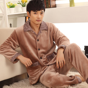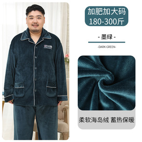 秋冬季珊瑚绒睡衣男士大码长袖套装冬天加厚加绒中年法...