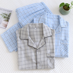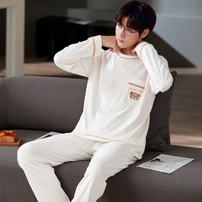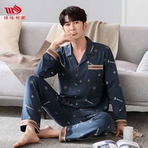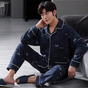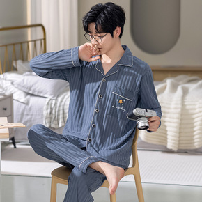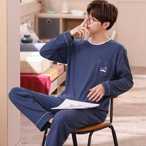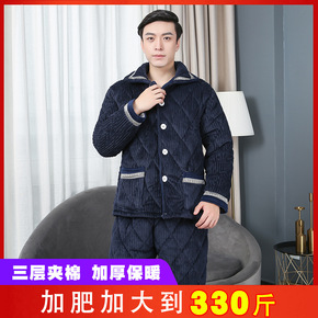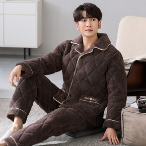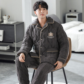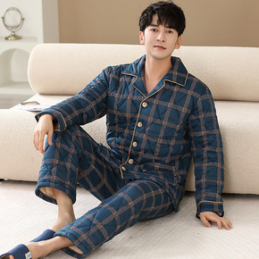 秋冬季男士睡衣三层保暖夹层加厚长袖纯棉大码家居服夹...