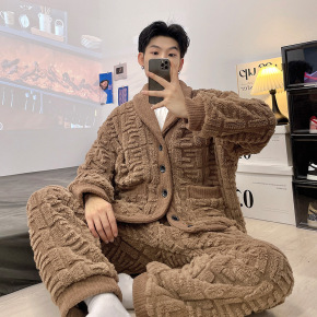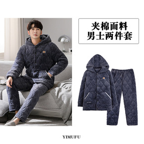 冬天睡衣男款加棉冬款加绒加厚男生冬季穿的棉袄珊瑚绒...