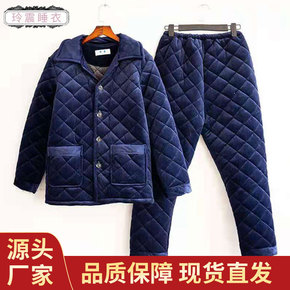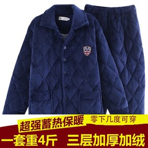 睡衣冬季男士家居服三层加厚保暖加棉加绒中老年人爸爸...