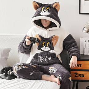 男士睡衣秋冬款冬季珊瑚绒加厚加绒法兰绒卡通家居服男...