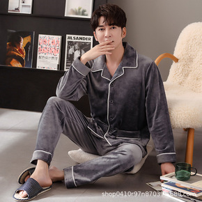 2022睡衣男士秋冬款冬季加绒加厚保暖法兰绒家居服...