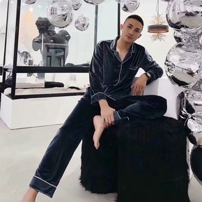 依慕芙法兰绒男士睡衣冬季加厚三层夹棉珊瑚绒秋冬保暖...