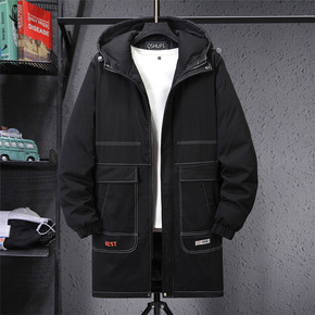 2021冬季新款羽绒服修身帅气男装连帽长款加厚休闲...