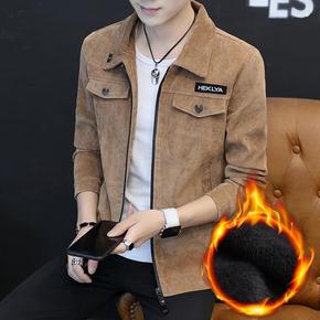 跨境男士灯芯绒外套冬季加绒加厚韩版修身帅气条绒翻领...