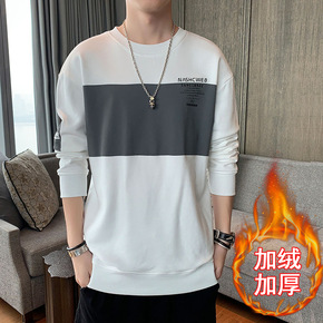 男卫衣加绒连帽 秋冬款韩版加厚纯色2018新款套装...