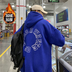 羊羔毛卫衣男加绒加厚小熊外套潮ins秋冬2021年...