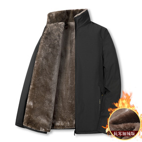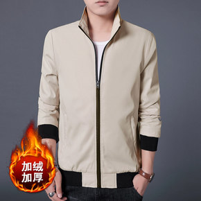 爸爸装外套加绒加厚男士40-50岁休闲夹克中老年秋...