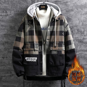 高质量外套男士加绒加厚新款时尚潮流夹克衫青年夹克休...