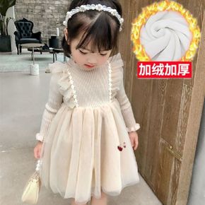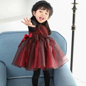 女童加绒连衣裙秋冬新款红色仙女裙钢琴演出服洋气冬季...
