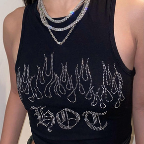 2022外贸冬季欧美跨境新款烫钻修身显瘦圆领时尚短...