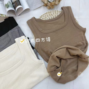 妃子纪6522秋冬方领螺纹内搭单件背心白色弹力大保...