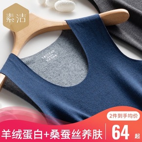 蚕丝德绒无痕保暖背心男士加绒内衣羊绒无袖自发热坎肩...