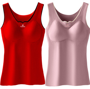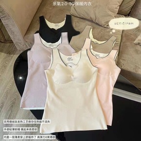 亲氧2.0德绒背心5G保暖内衣女无痕修身带胸垫双面...