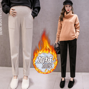 孕妇装2022秋冬新款韩版毛呢加绒加厚孕妇哈伦托腹...