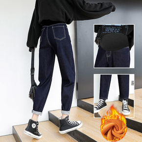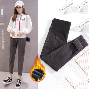 孕妇加绒牛仔裤冬季黑绒托腹裤铅笔裤小脚裤加厚保暖孕...