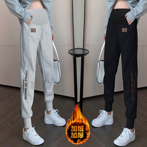 孕妇装2022冬季新款韩版加绒加厚字母贴布印花小脚...