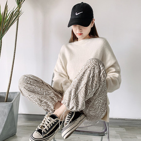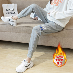 2021孕妇秋冬季加绒网红新款运动裤 孕妇布标束脚...