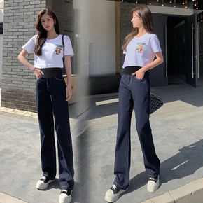 孕妇牛仔裤秋季大码宽松直筒长裤春秋款外穿秋装休闲阔...