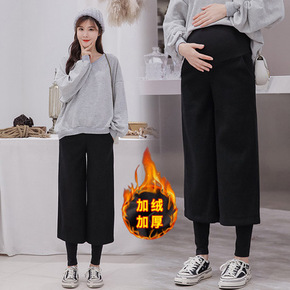 (实拍)秋冬潮妈九分毛呢阔腿连体打底长裤宽松孕妇裤...
