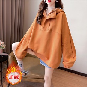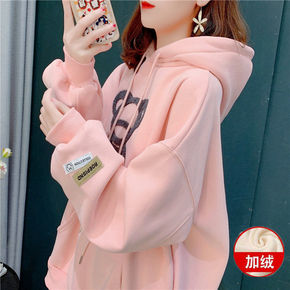 加绒加厚卫衣女2021冬新款韩版宽松慵懒风洋气连帽...