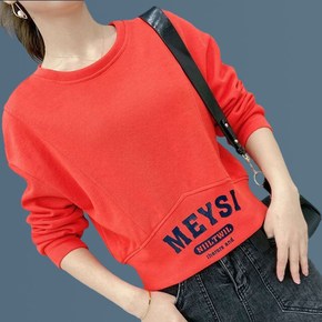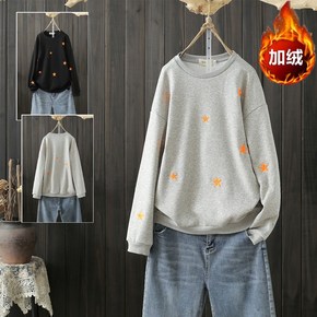 秋冬大码加绒卫衣女胖圆领刺绣五角星厚款打底衫200...