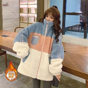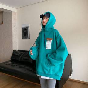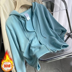 秋冬加绒开衫外套女感纯色韩版宽松保暖加厚连帽外穿厚...