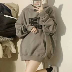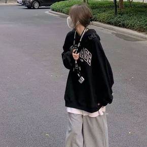 美式连帽卫衣女加绒厚【优质】毛衣宽松慵懒女秋冬外穿...