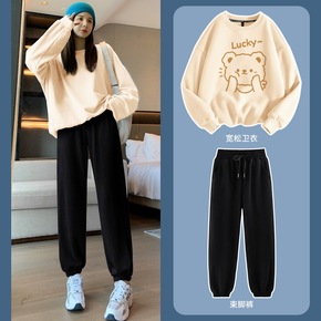 卫衣套装女秋冬秋季新款冬装冬季加绒厚女装运动服休闲...