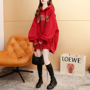 加绒加厚中长款卫衣女冬厚新款2021韩版宽松连帽圆...