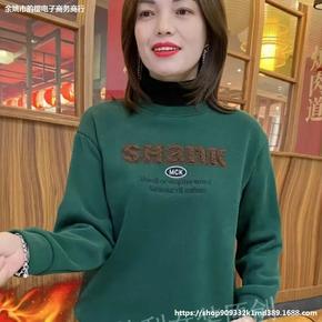 2021冬季新款加绒半高领卫衣女宽松韩版学生保暖拉...