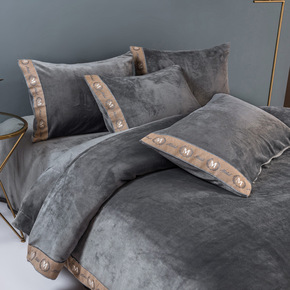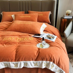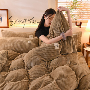 简约轻奢风秋冬床品加厚牛奶绒四件套法兰绒床单被套双...
