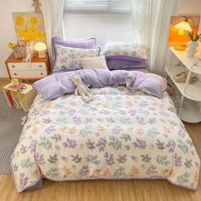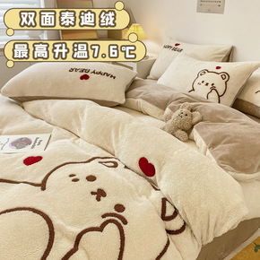 冬季加厚床上珊瑚绒四件套牛奶绒法兰加绒双面绒撸猫感...