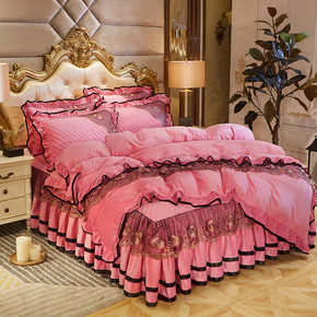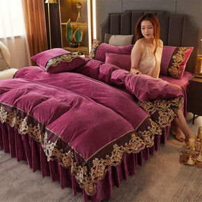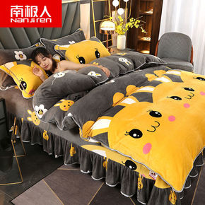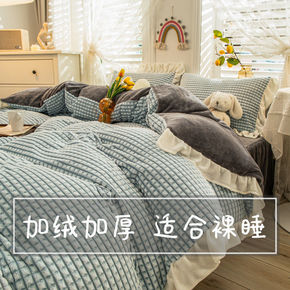 牛奶绒加绒加厚四件套冬季床裙毛绒保暖法兰绒双面珊瑚...