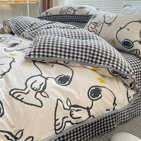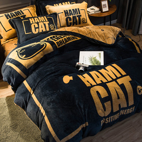 黑白电影禁欲冬季保暖毛绒四件套天鹅绒珊瑚绒床单床笠...