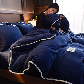 四件套冬天加绒牛奶法兰绒被套单件冬季珊瑚绒面1.5...
