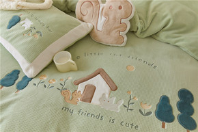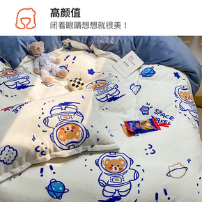 A版纯棉B豆豆绒珊瑚绒四件套小清新宝宝绒卡通印花加...