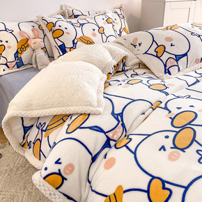 冬季牛奶羊羔绒床上四件套冬天双面绒卡通被套加厚法兰...