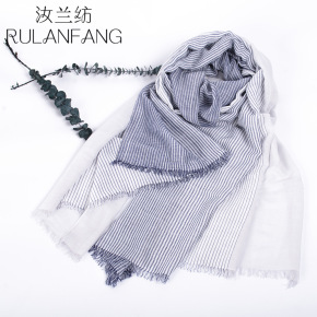 日系简约条纹围巾女春秋季薄款莫代尔防晒沙滩巾202...